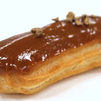 Baked choux pastry with a raspberry crème pat filling and finished with a raspberry glaze and freeze dried raspberry pieces.